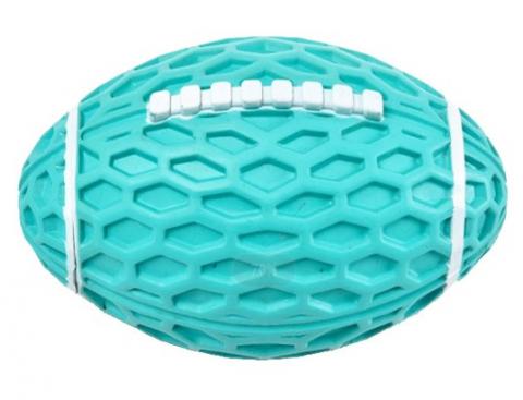 Παιχνίδι μπάλα ράγκμπι από καουτσούκ σε τιρκουάζ χρώμα.